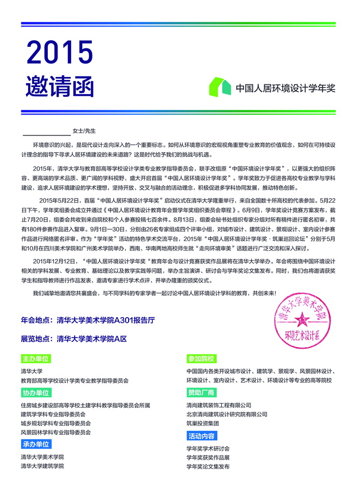 2015年 首届“中国人居环境设计学年奖”教育年会邀请函